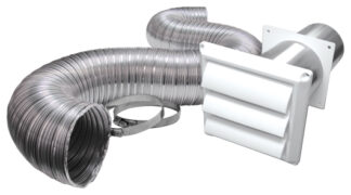 Includes louvered vent, aluminum semi rigid duct, trim plate, and 2 worm gear clampsITEM # MFG # SIZE PKG. QTY. 272279 313W 4″ X 5′ BOX 1 -