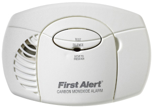 Basic 2 AA operated electrochemical carbon monoxide alarm with single button testsilence