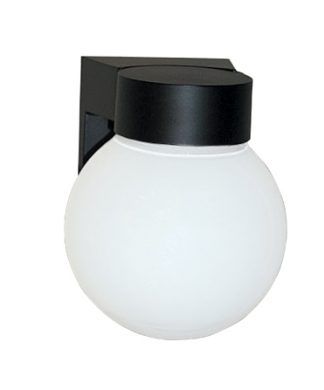 Black polycarbonate holder, 7-1/2″ high with 6″White acrylic ball globe