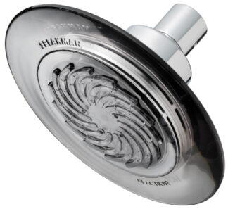 The Reaction low-flow showerhead features a patent-pending technology that infuses actual energy into each individual stream