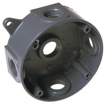 Designed for use as a weatherproof junction box, and maybe used with Bell® round cluster covers and round lampholder combinations