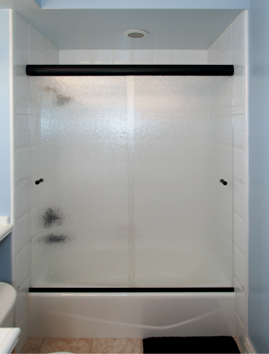 One exterior Thru-Glass Towel Bar and Tapered Knobs