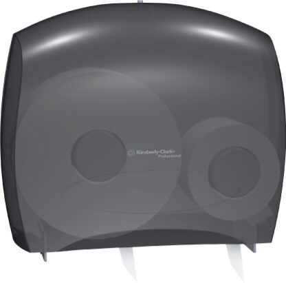 JRT toilet tissue dispenser is constructed of durable see-thru plastic