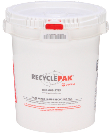 CFL and mixed lamp recycling pail 5-gallon pail can hold up to 50 lbs. of mixed lamps