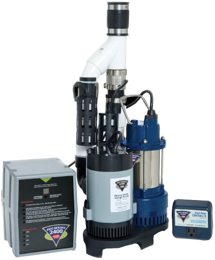 Backup pump will assist primary pump if excessive amounts of water are entering the sump