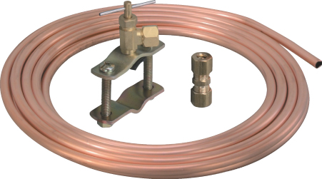 Includes 15 feet of 14″ OD copper tubing, self-piercing saddle clamp, and 14″ OD compression union