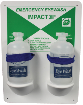 Wide mouth bottles provide initial flushing for alkali and acid splash