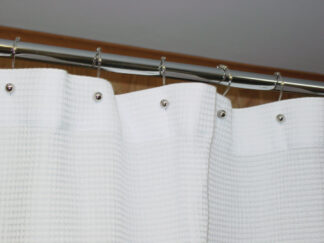 Stylish contemporary design glide easily over straight or curved shower curtain rods